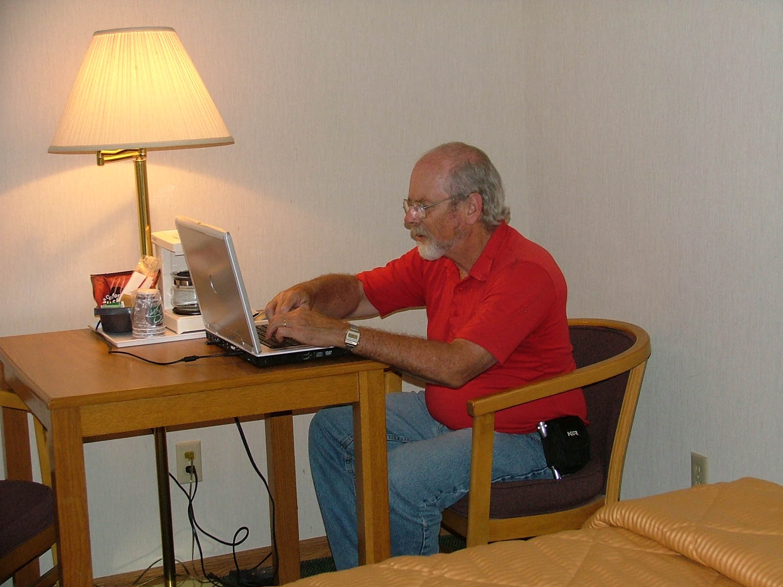Here Bill is back at his post, updating the website. We went out to Ponderosa Steak House for dinner. Another great day!