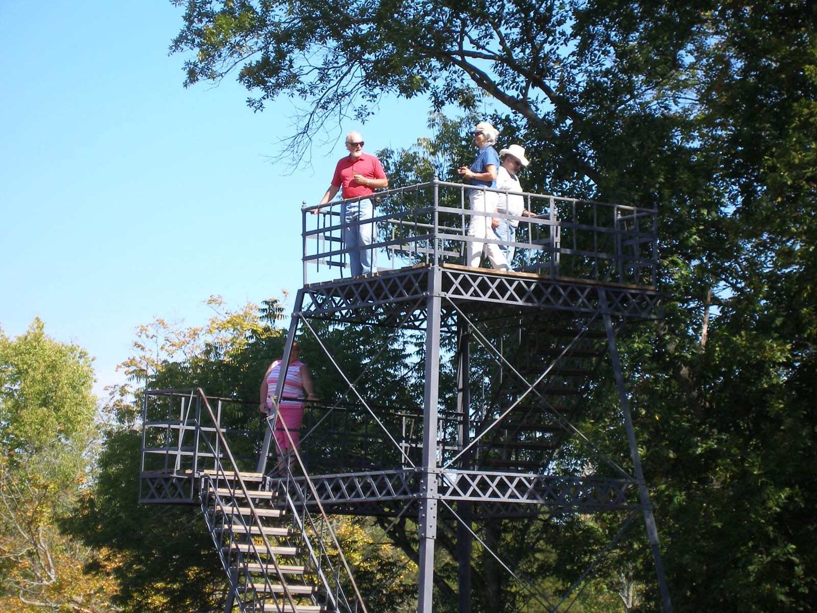 They had a spindly structure that you could climb to view the mound. Joane and I are looking down while Carol, Dick and Carl are looking up. Carl decided he liked the feel of the ground and did not ascend.
