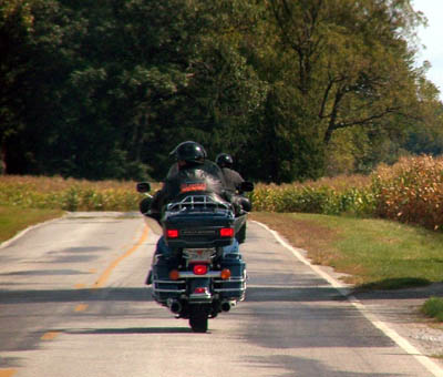 On the road at last! The guys had a big (free) breakfast at the motel, then rolled over to Carol's. She was finishing up her packing. The weather is bright, crisp, and clear! Maybe a little too crisp, it's only 60 with a forecasted high of 68. So we put on some extra layers and head out about 10:48. Carol led the pack through downtown Lima, which was quiet and very pretty on a Sunday morning. We want to avoid freeways as much as possible, so we take state route 81 over to Ada. This is a very nice road through beautiful farmland with no traffic. At Ada we turn North on SR 235. This is another great road, superb condition, beautiful rural scenery, and no traffic.