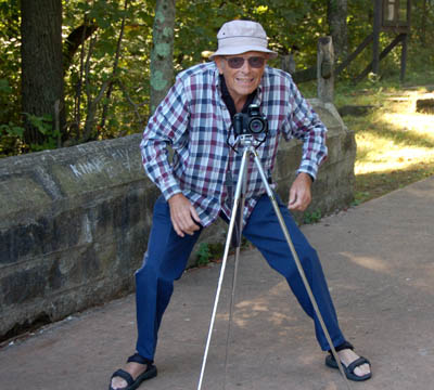 The park features a 1000' wide, 370' deep gorge. It turned out that it was very difficult to get a picture which really captured the scene. Here is our master photographer setting up.
