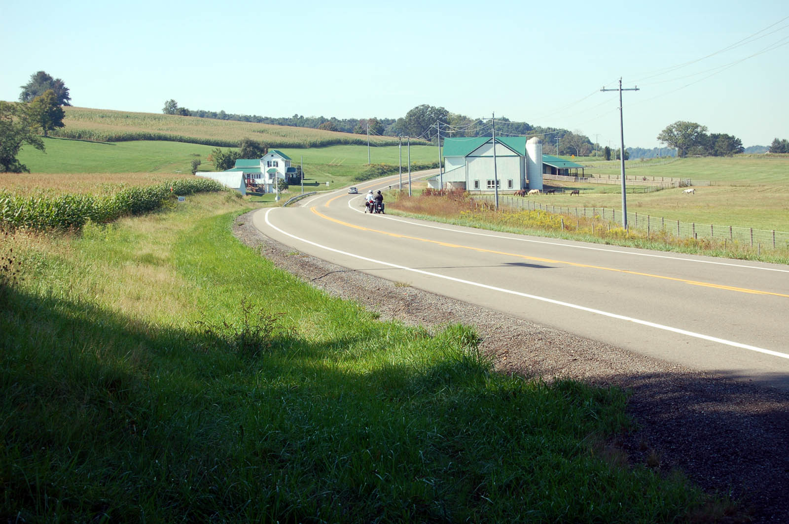 Dick took theses pictures as we were driving, and it will give you some idea of the area we were traveling through. Most of the day was in the Amish area of Holmes and Knox counties. We were treated to beautiful scenery with rolling hills and gorgeous fields, plus windy roads with little traffic. It doesn't get much better than this!
