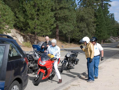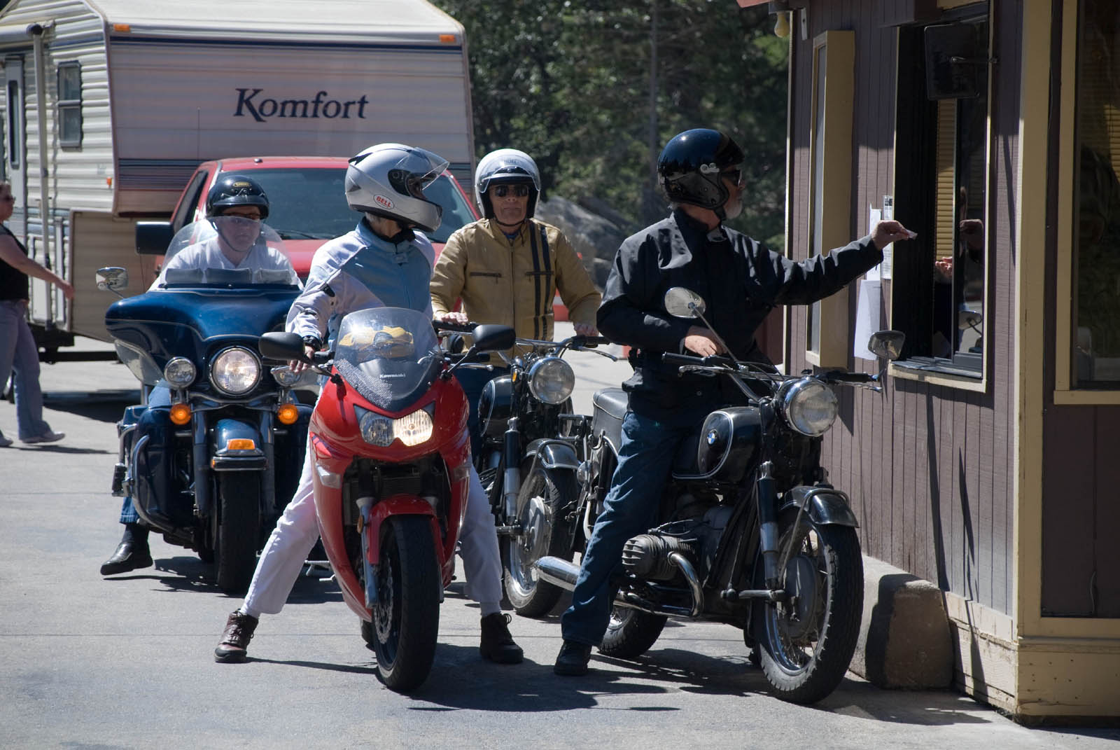 Entering Sequoia. I asked the lady in the booth if my Golden Eagle card would work for the other 3 motorcycles. She asked why I would think that, and I told her that the ranger at Yosemite had told me that. "Oh, Yosemite! Don't talk to me about Yosemite! Those guys are always telling people the wrong thing!". But she let us all in on the one card!