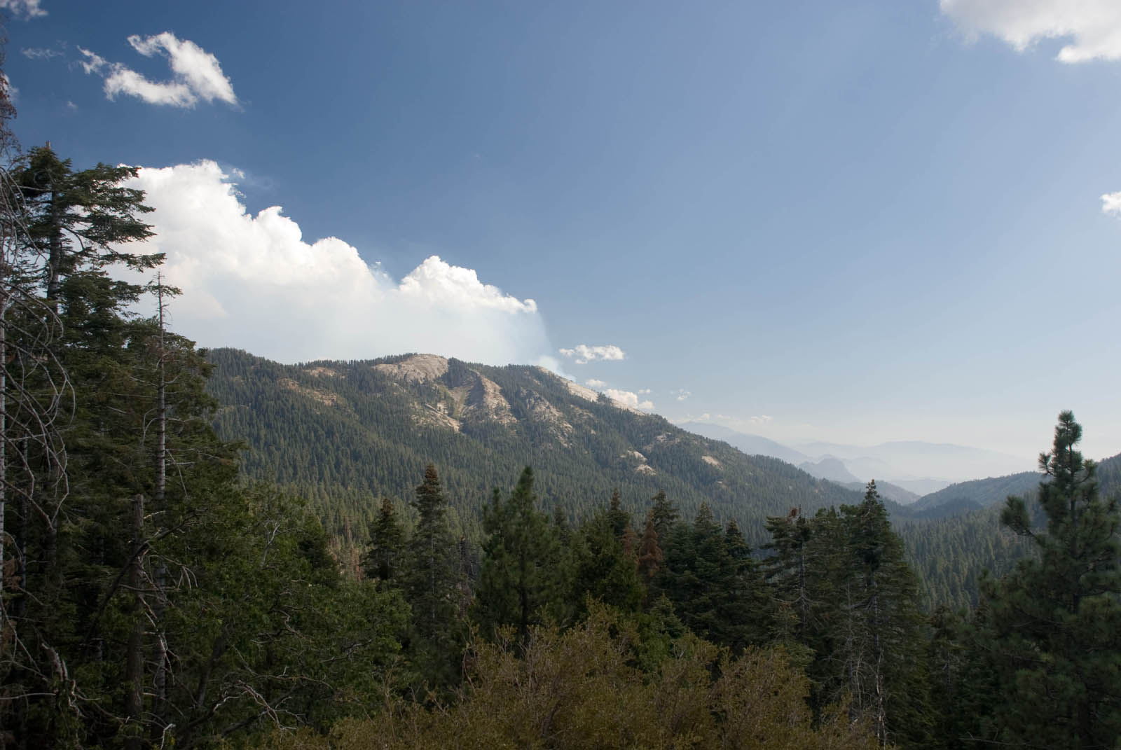 There is a long, windy road through Sequoia. There was a forest fire burning, and we saw lots of fire equipment, plus airplanes. We saw lots of smoke, but no flames.