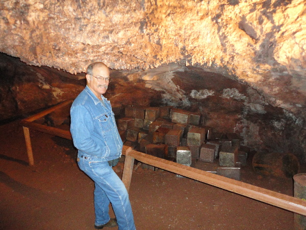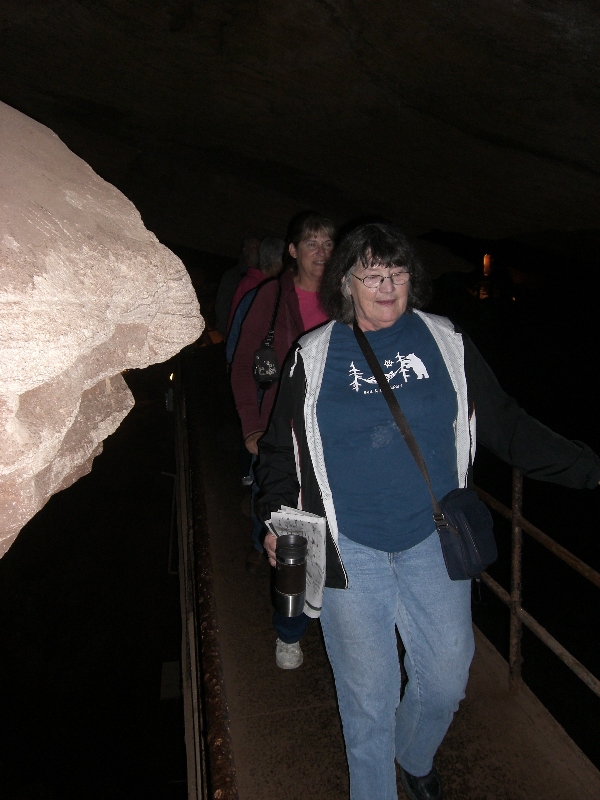 This is our genial and attractive guide, Jennifer. She said that her grandfather was one of the original workers opening up the caves, but he didn't believe anyone would pay to see them so he never invested in it.