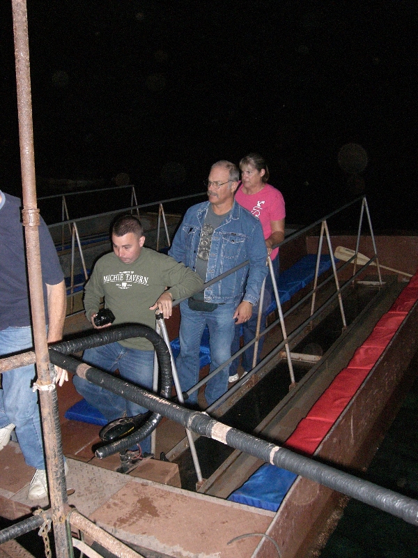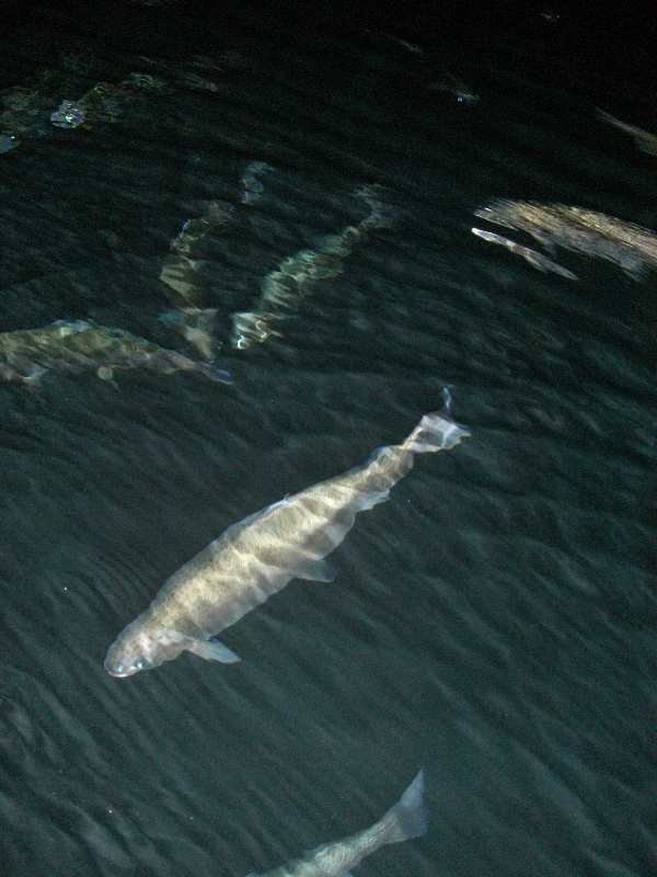 They stock the underground lake with about 400 brook trout each year, mostly for the entertainment value. Every boat feeds the fish, annd the fish are ready for it!