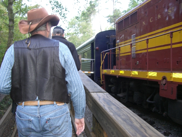 We decided to use the van to travel to the train in Etohwah, about 30 minutes away. That would save time since we wouldn't have to put on all the mc gear, and secure it at the train site. We left the Lodge at 7:30, and found a nice little restaurant in Etowah, Scotty's.