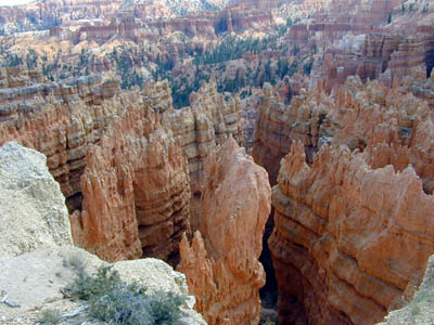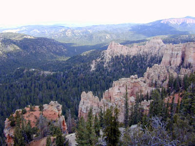 The ride to Bryce was about 75 miles, along fast, smooth 2-lane roads. As we approached Bryce, the hills suddenly turned from grey to red. You can see it in the picture above. The hill to the left is not shaded, it is actually grey colored!