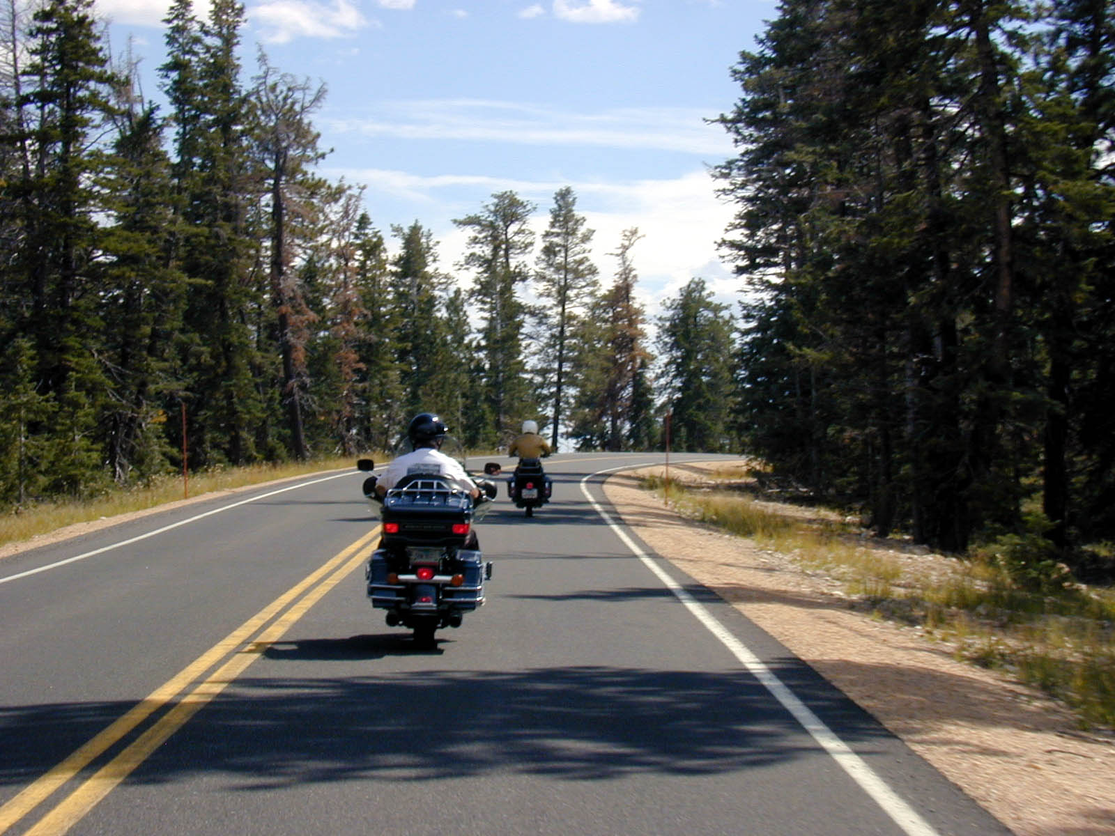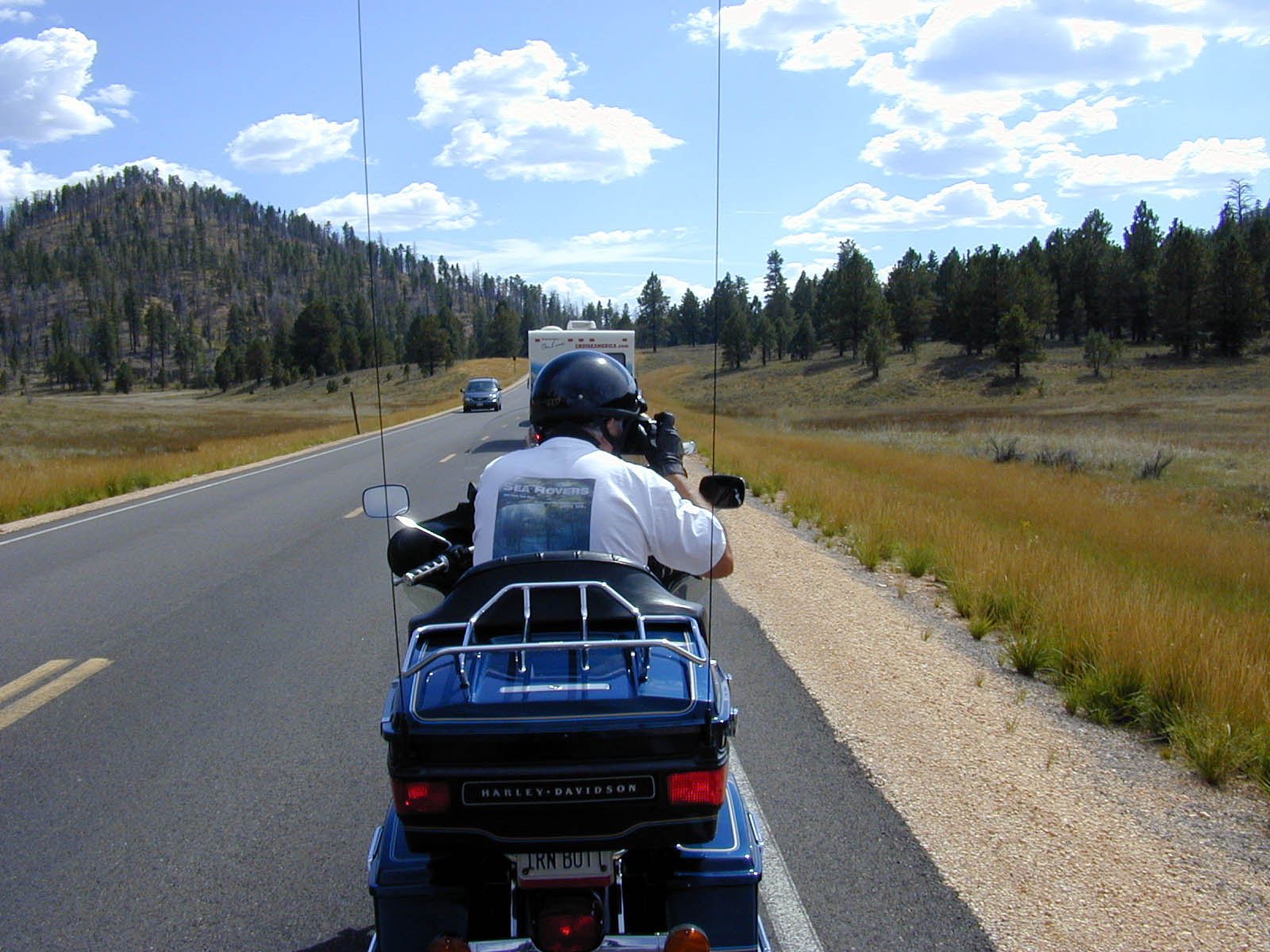 There is a 18 mile scenic drive with several overlooks along the way. So it was back on the bikes and off to the next spot. I wanted some shots of us moving, because this is the sight I had most of the time.