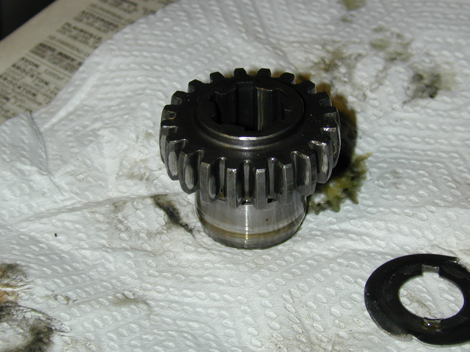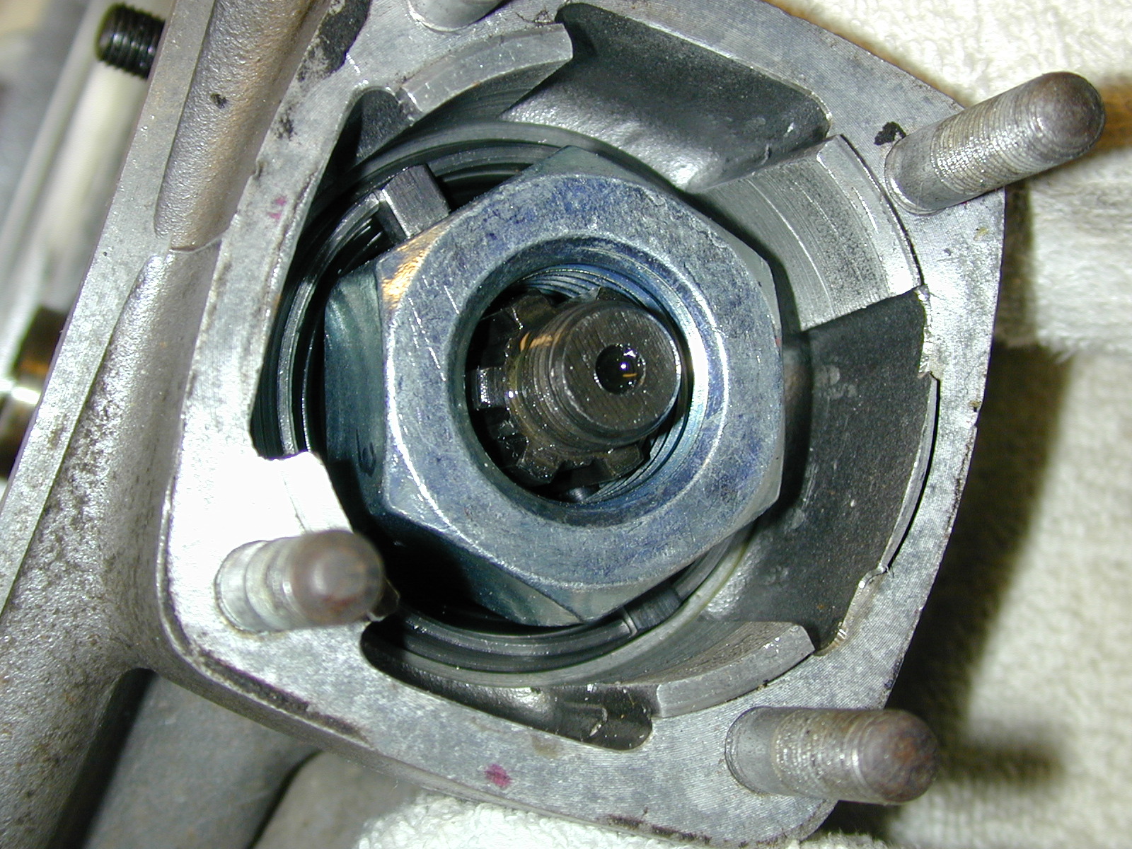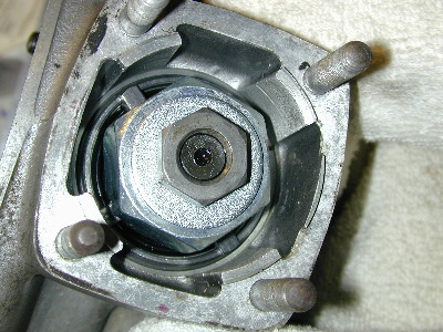 This is a shot of the splined coupling, with the nut and washer removed. The tool which held the coupling from rotating has been partially removed, to show it better.
