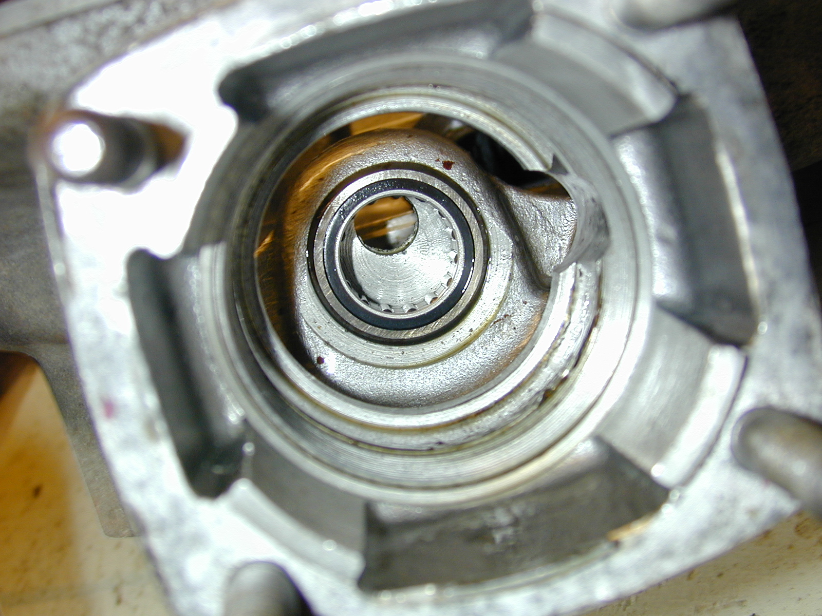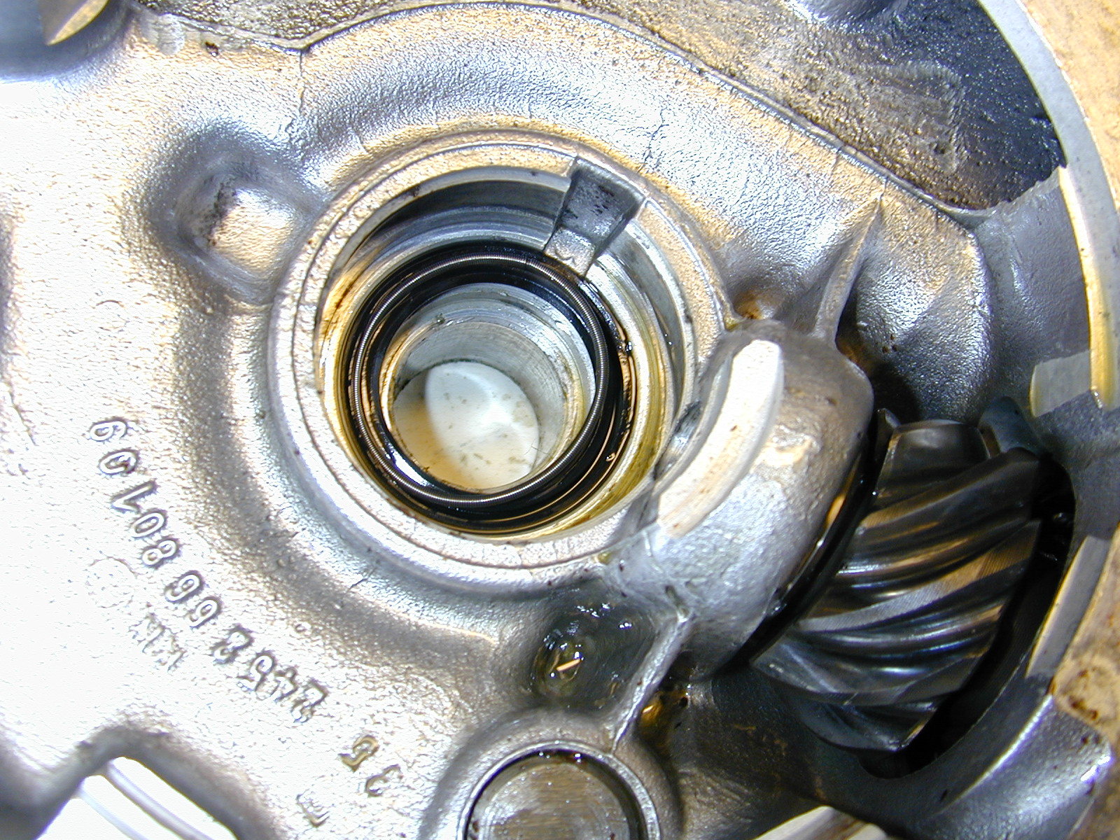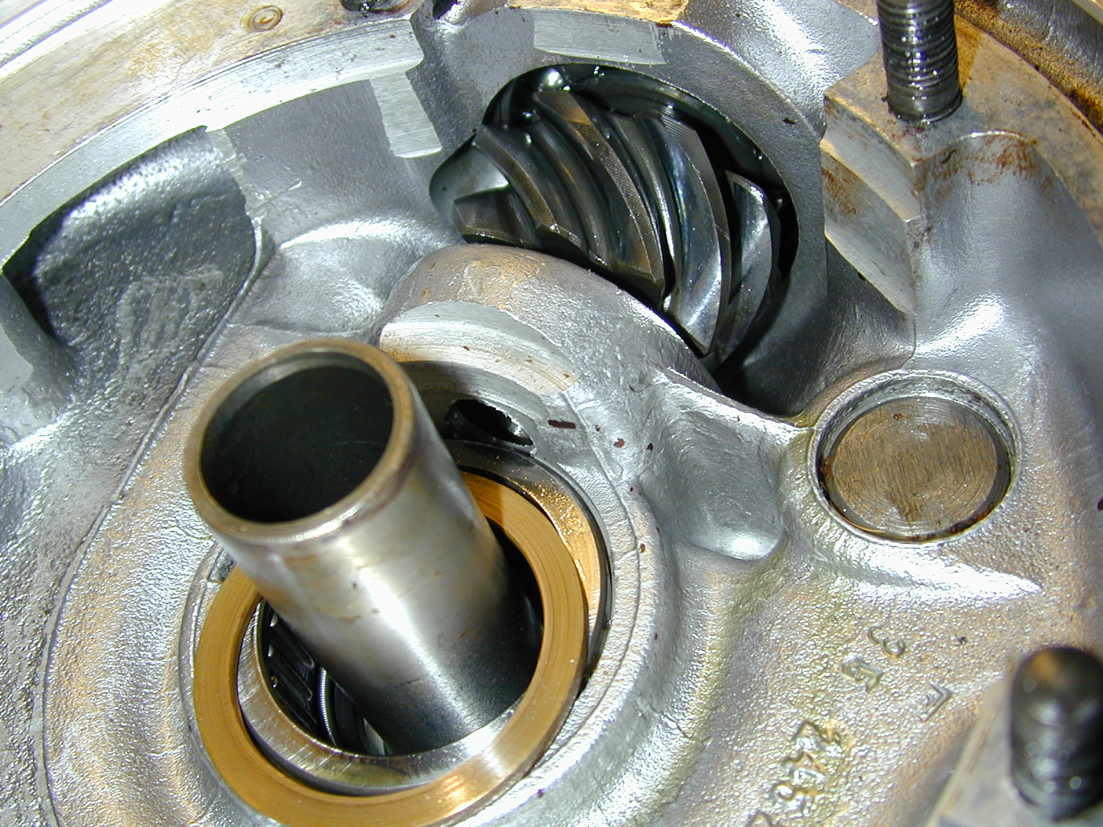 This is looking down the housing along the line of the pinion shaft.