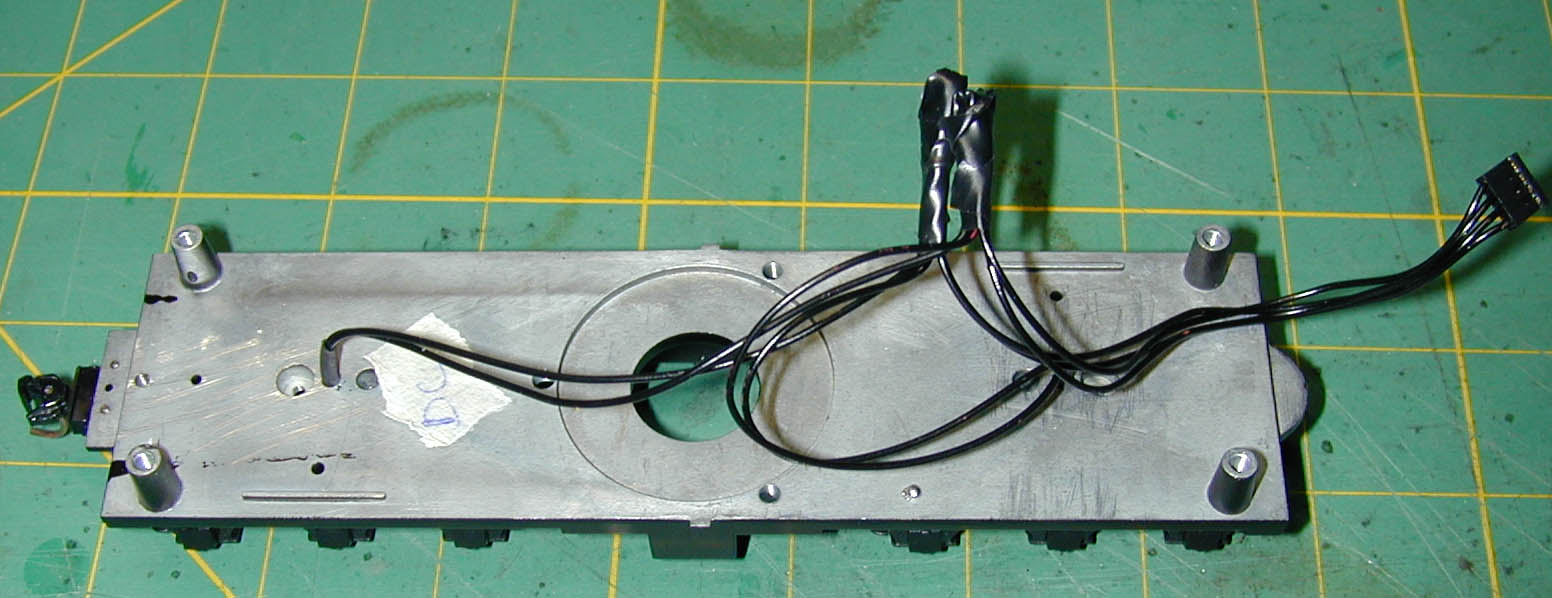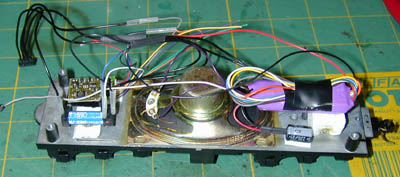 The shell comes off the tender by carefully spreading it shightly in the middle, which allows it to come off the tabs in the middle of each side of its chassis. Here's the tender chassis. The wires are from the pickups.Remove the electrical tape and desolder the plug.