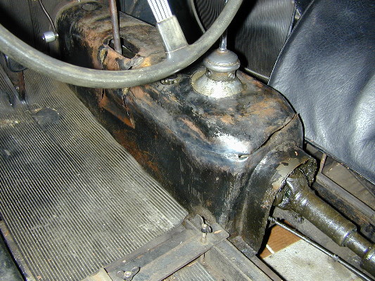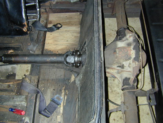 This is a side issue, but I couldn't get grease into the rear universal, so I ended up taking out the seats and the drive shaft cover so I could see what it looks like.