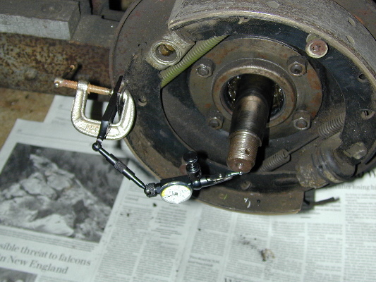 The book says there should be .006-008 (or .001-.005) end play. Pushing and pulling on the axle by hand I could not feel any movement, nor could I measure any play with the dial indicator.
