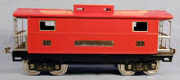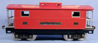 This is an MTH 10-1054 Tinplate Traditions reproduction of a Lionel 217 Standard gauge Caboose. Operating latch couplers on both ends. Bright red enamel finish with nickel trim. This car is lit.