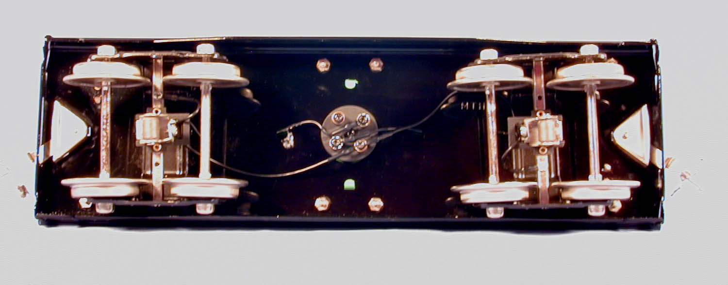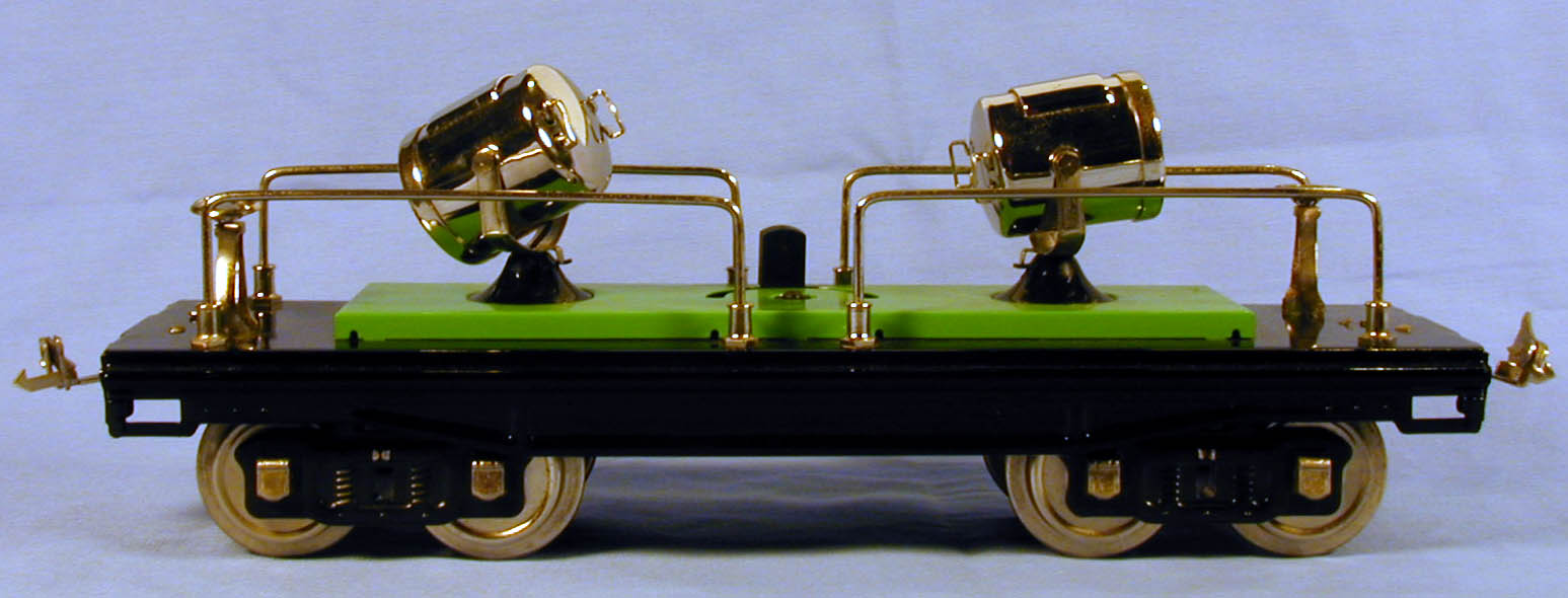 This is an MTH Tinplate Traditions reproduction of a Lionel 220 Standard gauge Searchlight Car. Box couplers on both ends. Two operationg searchlights.