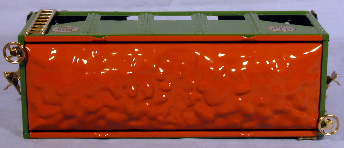 This is an MTH Tinplate Traditions reproduction of a Lionel 221 Standard gauge Ore Car. Operating latch couplers on both ends.